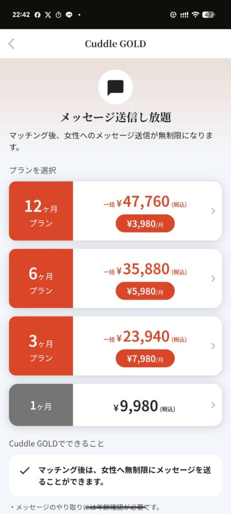 • 料金プランの詳細(Cuddle GOLDのみで出会えるか?)