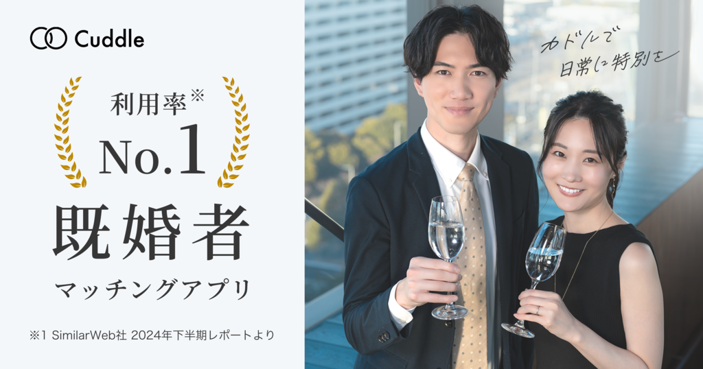 カドルの最大の特徴は元GAFA出身エンジニアが開発したAIマッチング機能「Cuddle’s Choice」。自分で相手を検索する手間なく、AIが毎日相性の良い相手を自動でピックアップしてくれます。既婚者アプリの中で利用率No.1(SimilarWeb社・2025年9月調査)を獲得しています。