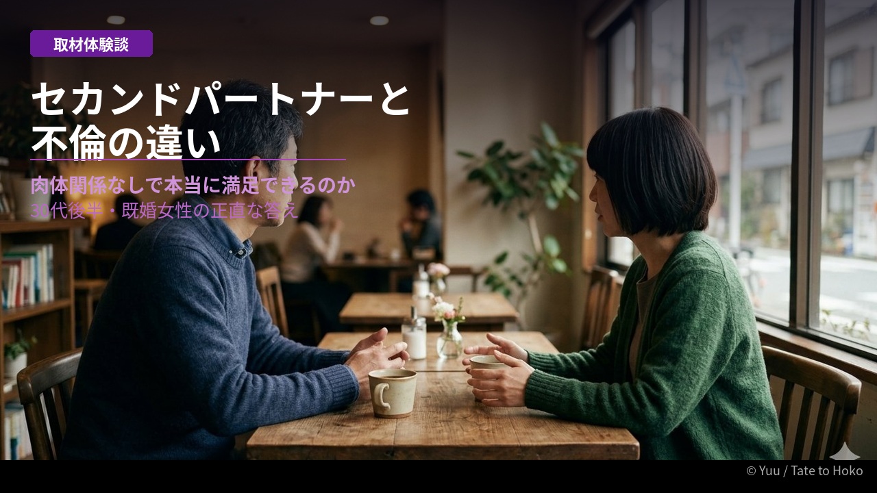 【体験談】セカンドパートナーと不倫の違い|肉体関係なしで本当に満足できるのか正直に答えます【2026年】